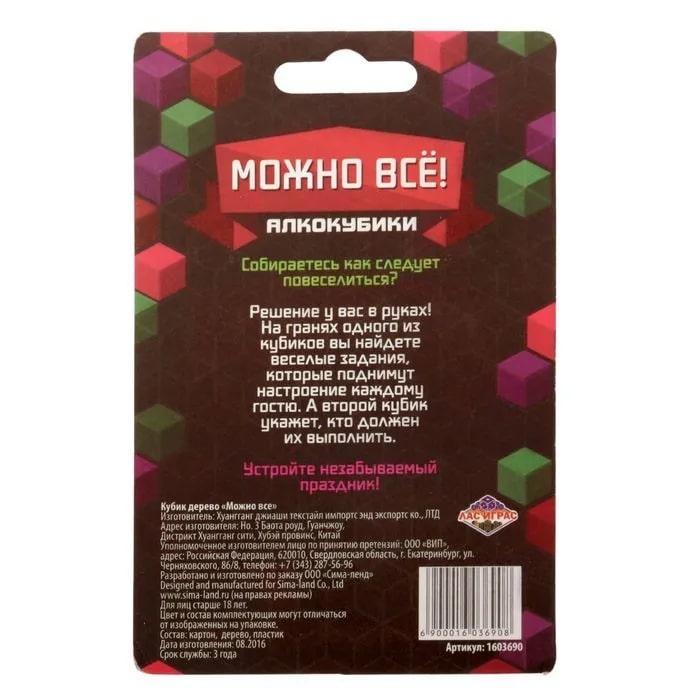 Купить кубик "можно все", алкокубики для принятия решений от 60 руб. с доставкой до пункта выдачи в Осе. Интернет магазин ДекаМаркет. Оплата при получении.
