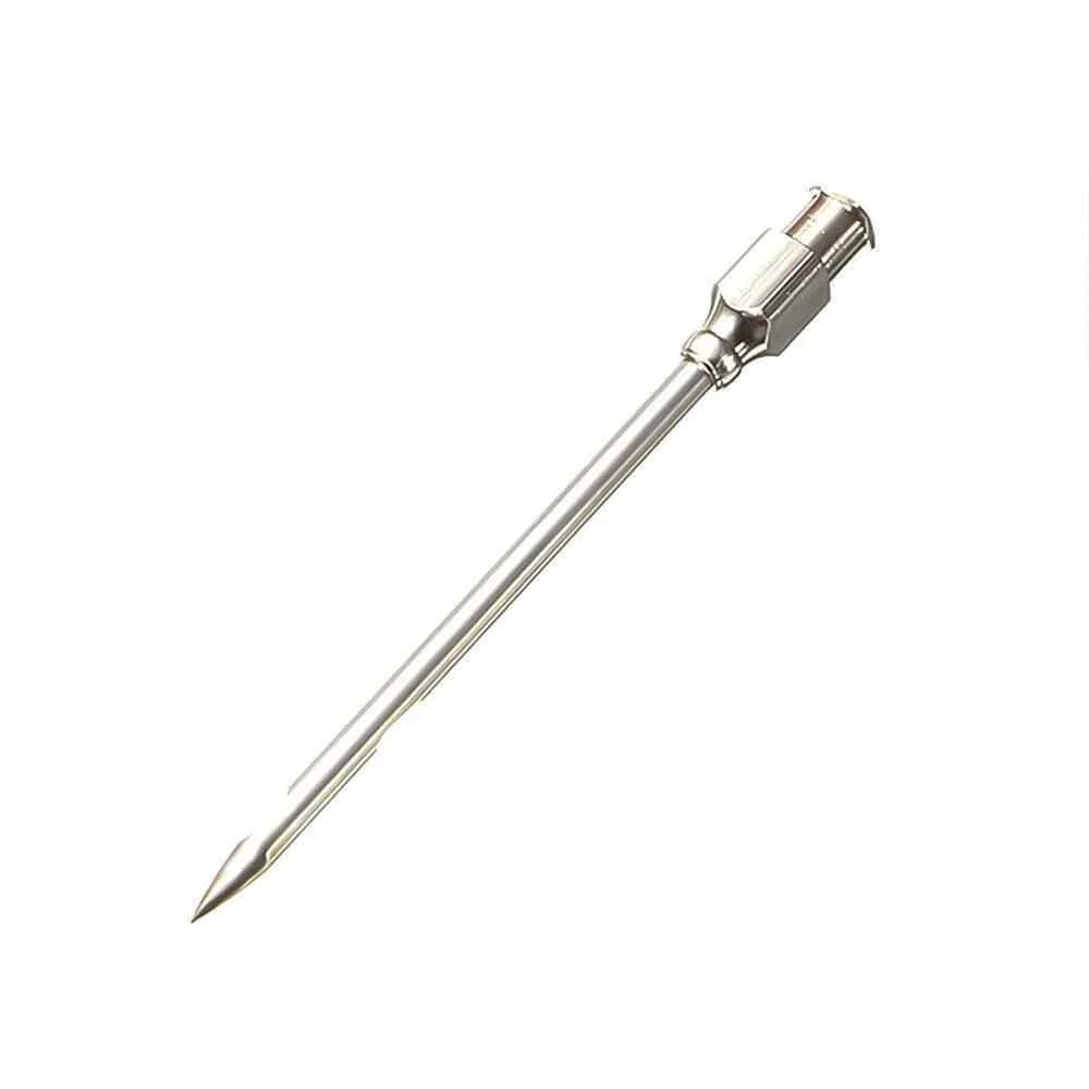 Чтобы ваши мясные изделия имели неповторимые вкус и аромат и были при этом невероятно сочные и мягкие вам просто необходимо приобрести иглу для маринования мяса. Она позволяет быстро замариновать любые виды мяса и птицы доставляя рассолы и маринады непосредственно во внутрь продукта. Шприцевание – это способ нашпиговать мясо который используют профессиональные повара. Он значительно сокращает время на маринование. Количество маринада при этом выбирается в следующих пропорциях: на 1 кг сырья необходимо взять 150 мл маринующей смеси. Игла для маринования мяса из нержавеющей стали полая с двумя отверстиями которые обеспечивают подачу маринада во внутрь продукта на несколько уровней сразу: поглубже внутрь и поближе к поверхности. Игла подходит к большинству шприц-инжекторам, а также к обычным медицинским пластиковым шприцам.